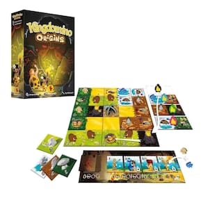 Tudo começou com o fogo Viaje no tempo até a era pré-histórica de Kingdomino Em kingdomino Origins, desenvolva sua tribo, levando o fogo a seus vários acampamentos, com ajuda dos terríveis vulcões e suas erupções. Explore recursos naturais: mamutes, peixes, sílex e cogumelos, para recrutar destemidos habitantes das cavernas, aumentando sua tribo e seu território de caça Há 3 modos de jogo em Kingdomino Origins: o primeiro introduz vulcões e fogo, o segundo utiliza recursos naturais para melhorar sua pontuação e o terceiro modo recruta habitantes das cavernas para ajudar sua tribo. Redescubra Kingdomino com um cenário e regras totalmente diferentes em um novo jogo completamente independente.