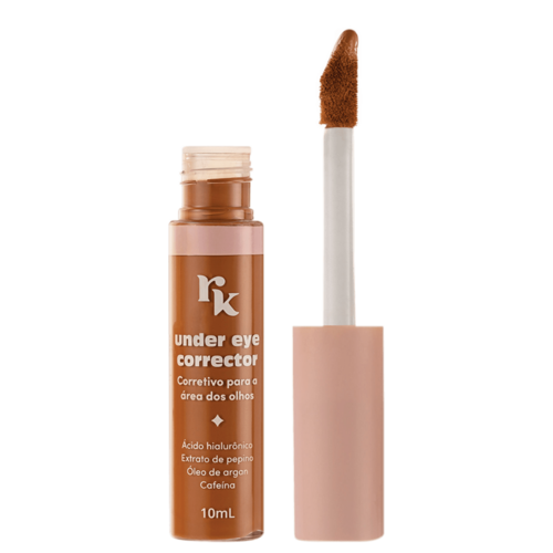 O Corretivo Kiss New York Ruby Kisses Under Eye apresenta textura leve e resistente ao suor e umidade, além de fórmula com ativos hidratantes e estimulantes para redução de olheiras.