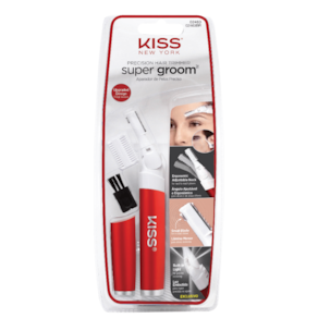 Aparador de pelos de rosto e sobrancelhas. Kiss New York Supergroom apara até os menores pelos, com rapidez e segurança.