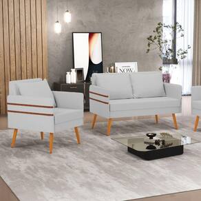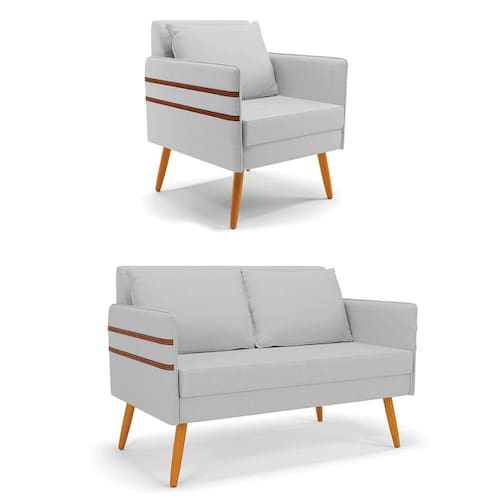 Que tal o kit Namoradeira e Poltrona Mari? Imagine-se utilizando esse kit e usufruindo de todos os benefícios que ele oferece. Pode ser utilizado para evidenciar e enriquecer o seu ambiente, descansar depois de um dia longo de trabalho, ver aquela série favorita ou simplesmente ler seu livro predileto. A estrutura deste conjunto é confeccionada em madeira de eucalipto proveniente de reflorestamento, suportando em média até 120 Kg, possuí pés palito castanho, garantindo uma maior resistência e durabilidade ao produto, o estofamento do assento e encosto é composto de espuma D-23, revestido em tecido Linho no tom Cinza. Então, se a sua dificuldade é a otimização de espaço, este Kit além de confortável e sofisticado, traz toda a funcionalidade que você precisa. Apenas alguns conjuntos estão disponíveis, separe o seu Kit 01 Namoradeira e 01 Poltrona Mari antes que acabem!