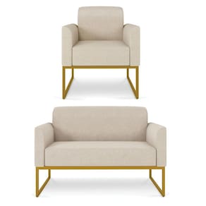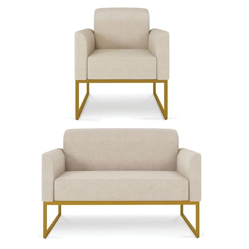 Apresentamos para você o Kit 01 Namoradeira e 01 Poltrona Marisa, que vai encher seu ambiente de cor e modernidade! Seu design feito com linhas retas proporciona conforto ao sentar-se sem falar em seus detalhes no assento e no encosto, um luxo! Sua estrutura robusta é confeccionada em madeira de eucalipto proveniente de reflorestamento, o estofamento do assento é composto de espuma prorelax D-23 no encosto e revestido em tecido Linho, sua sustentação é dada por uma base industrial metálica, suportando em média até 240 Kg a Namoradeira e 120 Kg cada Poltrona.