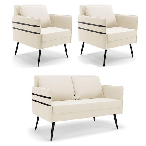 Que tal o kit Namoradeira e Poltrona Mari? Imagine-se utilizando esse kit e usufruindo de todos os benefícios que ele oferece. Pode ser utilizado para evidenciar e enriquecer o seu ambiente, descansar depois de um dia longo de trabalho, ver aquela série favorita ou simplesmente ler seu livro predileto. A estrutura deste conjunto é confeccionada em madeira de eucalipto proveniente de reflorestamento, suportando em média até 120 Kg, possuí Pés Palito de Ferro, garantindo uma maior resistência e durabilidade ao produto, o estofamento do assento e encosto é composto de espuma D-23, revestido em tecido Veludo no tom Bege. Então, se a sua dificuldade é a otimização de espaço, este Kit além de confortável e sofisticado, traz toda a funcionalidade que você precisa. Apenas alguns conjuntos estão disponíveis, separe o seu Kit 01 Namoradeira e 02 Poltronas Mari antes que acabem! Dimensões da Namoradeira: Altura total: 82 cm Largura total: 110 cm Profundidade total: 74 cm Altura do encosto: 35 cm Largura do assento: 104 cm Profundidade do assento: 57 cm Altura do chão ao assento: 47 cm Espessura do assento: 22 cm Altura do chão ao braço: 46 cm Altura interna do braço: 19 cm Tamanho dos pés: 25 cm Espessura do braço: 4 cm Peso: 20 kg Dimensões da Poltrona: Altura total: 82 cm Largura total: 63 cm Profundidade total: 74 cm Altura do encosto: 51 cm Largura do assento: 54 cm Profundidade do assento: 57 cm Altura do chão ao assento: 47 cm Espessura do assento: 22 cm Altura do chão ao braço: 46 cm Altura interna do braço: 19 cm Tamanho dos pés: 25 cm Espessura do braço: 4 cm Peso: 15 kg Dimensões da Almofada: Altura total: 34 cm Largura total: 51 cm Profundidade total: 20 cm Peso: 0,3 kg Especificações do Produto Estrutura: Madeira Eucalipto Espuma: D-23 Tecido: Veludo Tipo de pés: Pés Palito de Ferro Peso suportado: Até 120 Kg Garantia: 90 dias contra defeito de fabricação Montagem: O produto vai montado, apenas rosquear os pés Instruções de limpeza: Utilizar um pano limpo e levemente úmido Você irá receber: 03 Volumes com 01 Namoradeira e 02 Poltronas Observações Relevantes - Todos os produtos vão embalados com total segurança; - As cores dos produtos podem sofrer alterações dependendo do seu monitor; - Para futuras compras, não garantimos a mesma tonalidade de cor, pois existe variação a cada lote do fabricante do tecido; - As imagens são meramente ilustrativas, não acompanham objetos de decoração e eletros; - Confira as dimensões do produto no momento da compra e certifique-se de que passará normalmente por escadas, elevadores, portas e corredores; - Importante: Por se tratar de estofado as medidas podem ter uma pequena variação em até 3 cm; - Não nos responsabilizamos no ato da entrega por montagens, desmontagens, instalações de produtos; - Não nos responsabilizamos no ato da entrega por subir escadas, elevadores, nem utilização de guinchos ou equipamentos similares para acesso a pisos superiores em apartamentos; - A entrega do produto é realizada em todo território nacional, até onde as rodovias alcançam, entregas fluviais ou aéreas devem ser cotadas a parte; - Observando as orientações acima, evita-se futuros desagrados ou imprevistos com a entrega do produto. Havendo despesas adicionais, serão de responsabilidade do cliente;