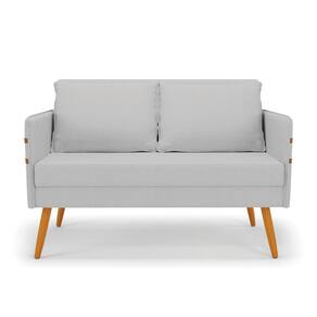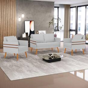 Kit 01 Namoradeira 02 Lugares e 02 Poltronas Mari Linho Pés Palito Castanho - D`Rossi - Cinza