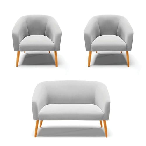 Kit 01 Namoradeira 02 Lugares E 02 Poltronas Stella Suede Pés Palito Castanho - D'rossi Cor Cinza