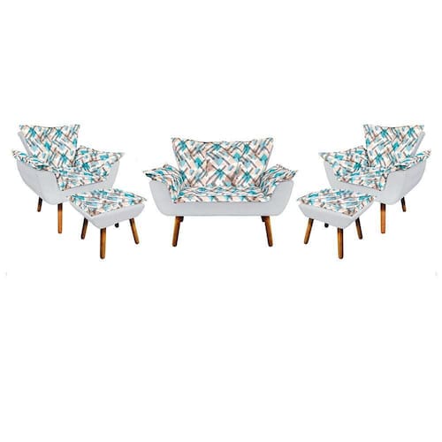 Chegou para vocês o Kit 01 Namoradeira com 02 Poltronas e 02 Puffs Opala! Sua neutralidade permite que você tenha total liberdade para combinar com as cores que quiser, criando um visual exclusivo e original. O seu interior é estruturado em madeira reflorestada de eucalipto e sua base é de MDF reforçada, com pés de madeira, já no encosto é utilizado no a espuma D-23, revestidos em um tecido de ótima qualidade. Ao escolher a maravilhosa Opala você permite causar boas impressões, fazendo seu próprio estilo! Sendo feita a junção desses móveis, ficará incrível qualquer lugar em que escolher colocá-los! Não fique por fora dessa oportunidade única de ter o Kit Opala em sua casa! Dimensões da Namoradeira Altura total: 91 cm Largura total: 128 cm Profundidade total: 62 cm Altura do encosto: 48 cm Largura do assento: 88 cm Profundidade do assento: 46 cm Altura do chão ao assento: 47 cm Espessura do assento: 17 cm Tamanho dos pés: 30 cm Altura do chão ao braço: 65 cm Altura interna do braço: 18 cm Espessura do braço: 20 cm Peso: 22 kg Dimensões da Poltrona Altura total: 91 cm Largura total: 80 cm Profundidade total: 67 cm Altura do encosto: 46 cm Largura do assento: 40 cm Profundidade do assento: 46 cm Altura do chão ao assento: 46 cm Espessura do assento: 16 cm Tamanho dos pés: 30 cm Altura do chão ao braço: 63 cm Altura interna do braço: 23 cm Espessura do braço: 20 cm Peso: 14 kg Dimensões do Puff Altura: 45 cm Largura: 50 cm Profundidade: 40 cm Peso: 5 KG Especificações do Produto Estrutura da Poltrona: Madeira Eucalipto Tecido: Suede (100% Poliéster) Estampado (100% Poliéster) Tipo de pés: Palito de Madeira Peso Suportado: Namoradeira até 240 Kg, a Poltrona e Puff até 120 Kg Garantia: 90 dias contra defeito de fabricação Montagem: O produto vai montado, apenas rosquear os pés. Instruções de Limpeza: Utilizar um pano limpo e seco Você irá receber: 05 volumes Observações Relevantes