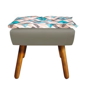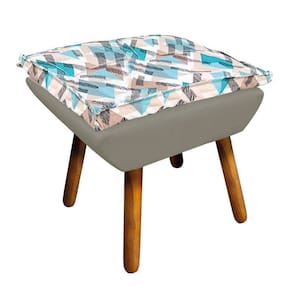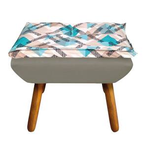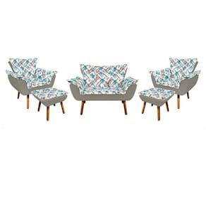 Kit 01 Namoradeira Com 02 Poltronas E 02 Puffs Opala Composê Suede Com Estampado Traçado Azul D33 Pés Palito Castanho Cor Marrom Rato
