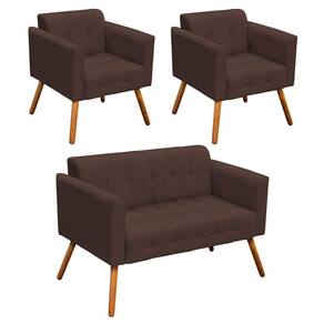 Kit 01 Namoradeira e 02 Poltronas Elisa Suede Marrom Pés Palito Castanho D'Rossi