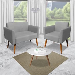 Kit 01 Namoradeira e 02 Poltronas Marisa Suede Grafite Pés Palito Castanho D'Rossi