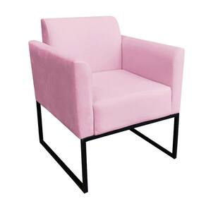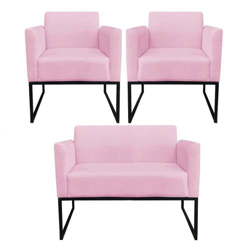 Kit 01 Namoradeira e 02 Poltronas Marisa Suede Rosa Bebê Base Industrial Metálica Preto D'Rossi