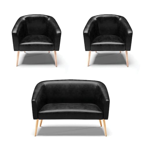 Kit 01 Namoradeira 02Lug E 02 Poltronas Stella Natural Preto