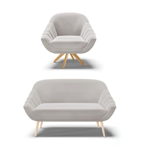 Kit 01 Namoradeira Pés Palito Natural E 01 Poltrona Giratória Giovana Veludo Cinza Base Madeira Ma30 - D'rossi