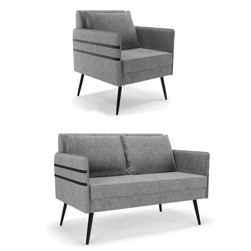 Que tal o kit Namoradeira e Poltrona Mari? Imagine-se utilizando esse kit e usufruindo de todos os benefícios que ele oferece. Pode ser utilizado para evidenciar e enriquecer o seu ambiente, descansar depois de um dia longo de trabalho, ver aquela série favorita ou simplesmente ler seu livro predileto. A estrutura deste conjunto é confeccionada em madeira de eucalipto proveniente de reflorestamento, suportando em média até 120 Kg, possuí Pés Palito de Ferro, garantindo uma maior resistência e durabilidade ao produto, o estofamento do assento e encosto é composto de espuma D-23, revestido em tecido Linho no tom Grafite. Então, se a sua dificuldade é a otimização de espaço, este Kit além de confortável e sofisticado, traz toda a funcionalidade que você precisa. Apenas alguns conjuntos estão disponíveis, separe o seu Kit 01 Namoradeira e 01 Poltrona Mari antes que acabem! Dimensões da Namoradeira: Altura total: 82 cm Largura total: 110 cm Profundidade total: 74 cm Altura do encosto: 35 cm Largura do assento: 104 cm Profundidade do assento: 57 cm Altura do chão ao assento: 47 cm Espessura do assento: 22 cm Altura do chão ao braço: 46 cm Altura interna do braço: 19 cm Tamanho dos pés: 25 cm Espessura do braço: 4 cm Peso: 20 kg Dimensões da Poltrona: Altura total: 82 cm Largura total: 63 cm Profundidade total: 74 cm Altura do encosto: 51 cm Largura do assento: 54 cm Profundidade do assento: 57 cm Altura do chão ao assento: 47 cm Espessura do assento: 22 cm Altura do chão ao braço: 46 cm Altura interna do braço: 19 cm Tamanho dos pés: 25 cm Espessura do braço: 4 cm Peso: 15 kg Dimensões da Almofada: Altura total: 34 cm Largura total: 51 cm Profundidade total: 20 cm Peso: 0,3 kg Especificações do Produto Estrutura: Madeira Eucalipto Espuma: D-23 Tecido: Linho Tipo de pés: Pés Palito de Ferro Peso suportado: Até 120 Kg Garantia: 90 dias contra defeito de fabricação Montagem: O produto vai montado, apenas rosquear os pés Instruções de limpeza: Utilizar um pano limpo e levemente úmido Você irá receber: 02 Volumes com 01 Namoradeira e 01 Poltrona Observações Relevantes - Todos os produtos vão embalados com total segurança; - As cores dos produtos podem sofrer alterações dependendo do seu monitor; - Para futuras compras, não garantimos a mesma tonalidade de cor, pois existe variação a cada lote do fabricante do tecido; - As imagens são meramente ilustrativas, não acompanham objetos de decoração e eletros; - Confira as dimensões do produto no momento da compra e certifique-se de que passará normalmente por escadas, elevadores, portas e corredores; - Importante: Por se tratar de estofado as medidas podem ter uma pequena variação em até 3 cm; - Não nos responsabilizamos no ato da entrega por montagens, desmontagens, instalações de produtos; - Não nos responsabilizamos no ato da entrega por subir escadas, elevadores, nem utilização de guinchos ou equipamentos similares para acesso a pisos superiores em apartamentos; - A entrega do produto é realizada em todo território nacional, até onde as rodovias alcançam, entregas fluviais ou aéreas devem ser cotadas a parte; - Observando as orientações acima, evita-se futuros desagrados ou imprevistos com a entrega do produto. Havendo despesas adicionais, serão de responsabilidade do cliente;