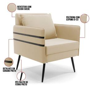 Kit 01 Namoradeira 02 Lugares E 01 Poltrona Mari Suede Pés Palito De Ferro - D'rossi Cor Bege