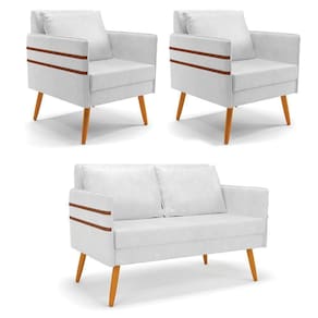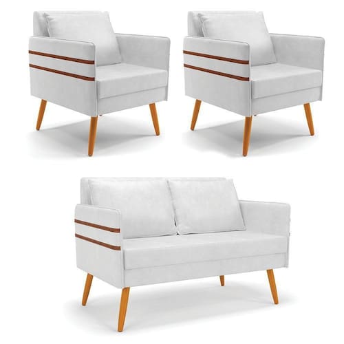 Que tal o kit Namoradeira e Poltrona Mari? Imagine-se utilizando esse kit e usufruindo de todos os benefícios que ele oferece. Pode ser utilizado para evidenciar e enriquecer o seu ambiente, descansar depois de um dia longo de trabalho, ver aquela série favorita ou simplesmente ler seu livro predileto. A estrutura deste conjunto é confeccionada em madeira de eucalipto proveniente de reflorestamento, suportando em média até 120 Kg, possuí pés palito castanho, garantindo uma maior resistência e durabilidade ao produto, o estofamento do assento e encosto é composto de espuma D-23, revestido em tecido Corano no tom Branco. Então, se a sua dificuldade é a otimização de espaço, este Kit além de confortável e sofisticado, traz toda a funcionalidade que você precisa. Apenas alguns conjuntos estão disponíveis, separe o seu Kit 01 Namoradeira e 02 Poltronas Mari antes que acabem!