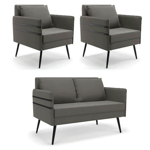 Que tal o kit Namoradeira e Poltrona Mari? Imagine-se utilizando esse kit e usufruindo de todos os benefícios que ele oferece. Pode ser utilizado para evidenciar e enriquecer o seu ambiente, descansar depois de um dia longo de trabalho, ver aquela série favorita ou simplesmente ler seu livro predileto. A estrutura deste conjunto é confeccionada em madeira de eucalipto proveniente de reflorestamento, suportando em média até 120 Kg, possuí Pés Palito de Ferro, garantindo uma maior resistência e durabilidade ao produto, o estofamento do assento e encosto é composto de espuma D-23, revestido em tecido Suede. Então, se a sua dificuldade é a otimização de espaço, este Kit além de confortável e sofisticado, traz toda a funcionalidade que você precisa. Apenas alguns conjuntos estão disponíveis, separe o seu Kit 01 Namoradeira e 02 Poltronas Mari antes que acabem! Dimensões da Namoradeira: Altura total: 82 cm Largura total: 110 cm Profundidade total: 74 cm Altura do encosto: 35 cm Largura do assento: 104 cm Profundidade do assento: 57 cm Altura do chão ao assento: 47 cm Espessura do assento: 22 cm Altura do chão ao braço: 46 cm Altura interna do braço: 19 cm Tamanho dos pés: 25 cm Espessura do braço: 4 cm Peso: 20 kg Dimensões da Poltrona: Altura total: 82 cm Largura total: 63 cm Profundidade total: 74 cm Altura do encosto: 51 cm Largura do assento: 54 cm Profundidade do assento: 57 cm Altura do chão ao assento: 47 cm Espessura do assento: 22 cm Altura do chão ao braço: 46 cm Altura interna do braço: 19 cm Tamanho dos pés: 25 cm Espessura do braço: 4 cm Peso: 15 kg Dimensões da Almofada: Altura total: 34 cm Largura total: 51 cm Profundidade total: 20 cm Peso: 0,3 kg Especificações do Produto Estrutura: Madeira Eucalipto Espuma: D-23 Tecido: Suede Tipo de pés: Pés Palito de Ferro Peso suportado: Até 120 Kg Garantia: 90 dias contra defeito de fabricação Montagem: O produto vai montado, apenas rosquear os pés Instruções de limpeza: Utilizar um pano limpo e levemente úmido Você irá receber: 03 Volumes com 01 Namoradeira e 02 Poltronas Observações Relevantes - Todos os produtos vão embalados com total segurança; - As cores dos produtos podem sofrer alterações dependendo do seu monitor; - Para futuras compras, não garantimos a mesma tonalidade de cor, pois existe variação a cada lote do fabricante do tecido; - As imagens são meramente ilustrativas, não acompanham objetos de decoração e eletros; - Confira as dimensões do produto no momento da compra e certifique-se de que passará normalmente por escadas, elevadores, portas e corredores; - Importante: Por se tratar de estofado as medidas podem ter uma pequena variação em até 3 cm; - Não nos responsabilizamos no ato da entrega por montagens, desmontagens, instalações de produtos; - Não nos responsabilizamos no ato da entrega por subir escadas, elevadores, nem utilização de guinchos ou equipamentos similares para acesso a pisos superiores em apartamentos; - A entrega do produto é realizada em todo território nacional, até onde as rodovias alcançam, entregas fluviais ou aéreas devem ser cotadas a parte; - Observando as orientações acima, evita-se futuros desagrados ou imprevistos com a entrega do produto. Havendo despesas adicionais, serão de responsabilidade do cliente;