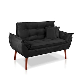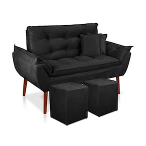 kit 01 Namoradeira Opala 02 lugares + 02 Puff quadrado + 02 Almofadas Suede Sala, Salão, recepção, quarto - Preto