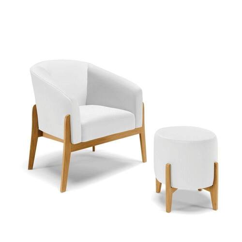 Com o Kit 01 Poltrona e 01 Puff Stella você vai agregar o estilo que você deseja dar à sua casa. Começando pela poltrona, é uma peça com um design incrível, super macia e resistente, com um conforto único, principalmente pela altura do assento e encosto, com estrutura em madeira de eucalipto proveniente de reflorestamento, ela também vem com chapas de MDF, base em madeira castanho excelente para proporcionar muito mais conforto. Composta por espuma mais densa D-23 no seu encosto e no assento, tornando o móvel super resistente, é revestida em Tecido Corino no tom Branco, que contribui muito no conforto e no seu bem estar, além de ser super fácil de limpar. E não menos importante temos o Puff Stella para completar esse kit, produzido com materiais de qualidade ímpar, conta com revestimento em tecido Corino, com espuma com D-23 e base em madeira maciça. Esse kit vale o investimento, por trazer a vantagem de poder se adaptar às suas necessidades do momento, seja para acomodar suas visitas ou usá-lo como peça decorativa apenas. Ta esperando o que para escolher o seu Kit!