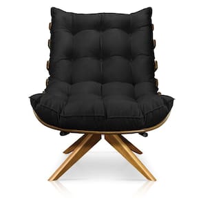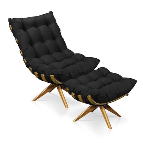 Kit 01 Poltrona e 01 Puff Giratório Costela Base - Preto