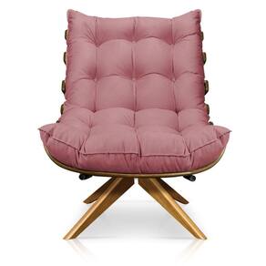 Kit 01 Poltrona E 01 Puff Giratório Costela Suede Base Madeira Ma25 D'rossi Cor Rose