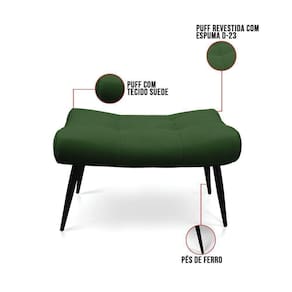 Saindo do forno, nosso lançamento Kit Poltrona e Puff Sher! Em primeira mão, a maior tendência do momento, ideal para residências, áreas corporativas, entre outros. Afinal é uma excelente aposta, para você que busca por um visual bastante atual. Sofisticação é o que define essa linda poltrona, com acabamento impecável e um design inovador a curvatura é perfeita para seu momento de descanso, almofada com regulagem de três níveis, sendo revestida com fibra siliconada que garante maior conforto e maciez. Estrutura em madeira de eucalipto proveniente de reflorestamento, espuma de alta qualidade D-23, tecido Suede no tom Verde, e os pés palito de ferro super duráveis e resistentes. Uma peça dessa em seu cômodo pode ser muito interessante para tornar o ambiente ainda mais surpreendente e refinado. Que tal adquiri-la antes de todo mundo?