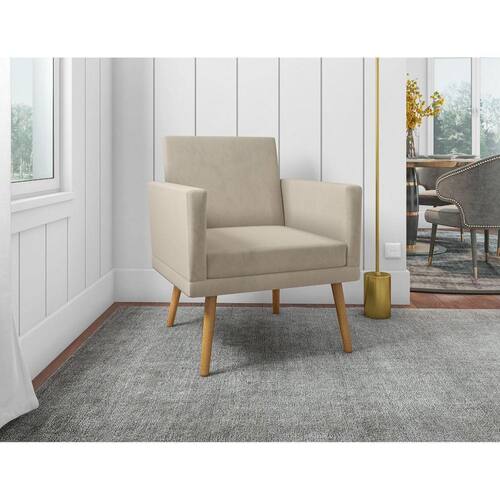 Poltrona Nina Luxo Decorativa inclui reforço na base sendo o assento e o encosto com almofada fixa e os és Palito na cor castanho.