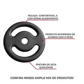 Anilhas Pintadas são compatívies com qualquer barra de ferro padrão podendo ser utilizadas em barras maciças e ocas. São fabricadas em ferro fundido, com pintura na cor preta dando um acabamento especial, ajudando na proteção contra oxidação. Possuem marcação da numeração referente ao seu respectivo peso , além de possuírem vão para pegada podendo se utilizada em diversas outros exercícios.Descrição Técnica:Material: Ferro Fundido PintadoDimensão Do Furo: 31 mm á 34 mm Contém:02 Anilhas Pintadas 2KgTotalizando: 4kg Marca: Camarx