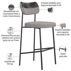 Para você que busca conforto, realce e praticidade, O Kit 02 Banquetas Alta Estofada Elira vai superar todas as suas expectativas! Garante muita comodidade e otimiza o espaço, além de harmonizar com seu estilo decorativo facilmente, podendo ser utilizada em bancadas, cozinha americana, espaço gourmet ou home bar, trazendo um toque especial em sua decoração. Sua proposta de design suavizará seu ambiente sem passar despercebida oferecendo mais leveza e receptividade ao seu lar. Estruturada em aço carbono, contrasta lindamente com o encosto e assento estofados que são extremamente confortáveis, resistentes e aconchegantes. Você merece esta incrível combinação em sua casa, adquira já a sua!