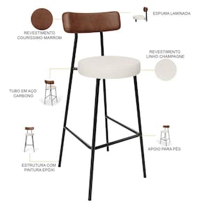 Amplamente moderna, dispondo de muito realce e design singular, o Kit 02 Banquetas Alta Bar Cozinha Sala De Jantar Aço Milão L02 Couríssimo Marrom Linho Champagne - Lyam Decor vem com a personalidade e elegância que sua decoração merece! Estruturada em aço carbono, contrasta lindamente com o encosto e assento estofados, cabe mencionar ainda o revestimento do seu encosto em Couríssimo e do assento em Linho, é confeccionada por materiais de excelente qualidade, extremamente resistentes e aconchegantes.