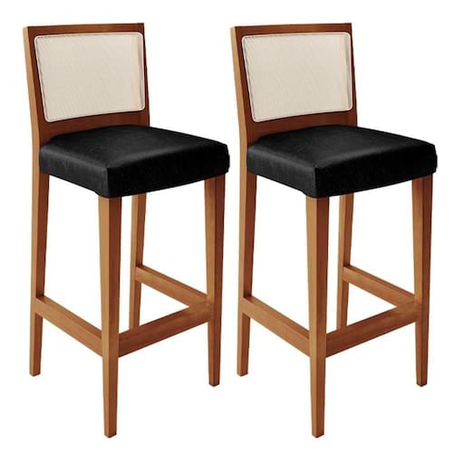 O Kit 02 Banquetas Alta Para Cozinha Sala de Jantar Fixa Telado Branco Zion L02 Linho Couríssimo Preto Brilho - Lyam Decor, possui um estilo rustico que faltava para deixar sua casa ainda mais clássica. Seu encosto com o detalhe de tela sintética na cor branca trazem ainda mais estilo e destaque para sua decoração, junto com assento estofado que proporciona de conforto. A estrutura e o apoio para os pés, são responsáveis por garantir maior segurança à mesma.