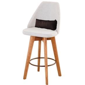 Kit 02 Banquetas Alta Maya Giratória Com Encosto Gourmet Linho Bege e Almofada Marrom - Aurora Line - Blush