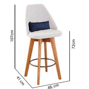 Kit 02 Banquetas Alta Maya Giratória Com Encosto Gourmet Linho Bege e Almofada Sintético Azul Marinho - Aurora Line - Blush