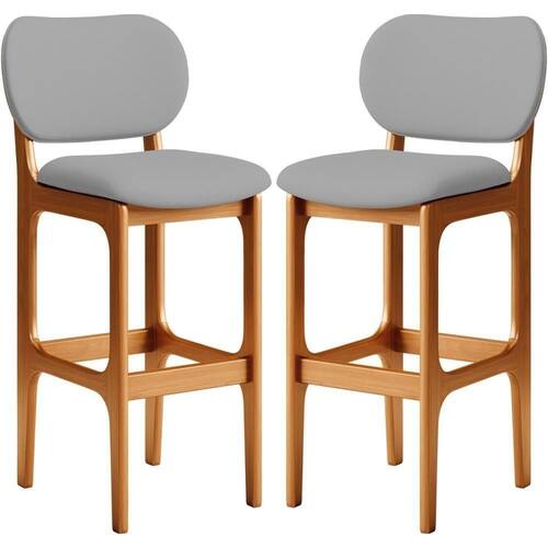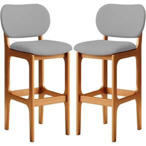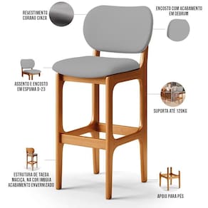 Amplamente sofisticado, o Kit 02 Banquetas Alta Para Cozinha Madeira Fixa Betta L02 Imbuia Corano Cinza - Lyam Decor irá agregar ainda mais valor em sua decoração!! Sendo capaz de compor muito bem o ambiente, é produzido com materiais de excelente qualidade, a resistente estrutura em madeira de Taeda, na cor imbuia, conta com apoio para os pés (que garante maior ), além do assento e encosto estofados super confortáveis e convidativos, que são revestidos em tecido Corano, composição extremamente elegante.