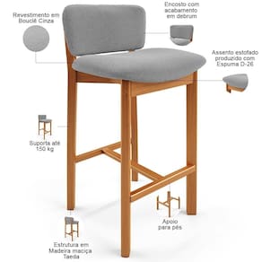 ProductHeight: 83 cm | OriginCountry: | MaterialFamily: Madeira e Espuma | ProductWarranty: 90 dias após o do produto | Requer montagem: Não | É dobrável: Não | ProductLength: 47 cm | ProductWidth: 47 cm | Peso: 20 kg | Material: Madeira e Espuma | Com espaço de armazenamento: Não | OriginState: PR | ProductContents: 02 Banquetas | ProductInstructions: Produto para uso residencial em ambiente interno, não devendo ficar exposto diretamente ao sol, calo | Com estofado: Sim | Material do estofamento: Bouclê | Quantidade de Caixas de embalagem: 1 | Cor do estofamento: Cinza | Largura do assento: 45 cm | Largura da cadeira: 47 cm | Fabricante: Lyam Decor | É cadeira de balanço: Não | Profundidade do assento: 37 cm | Diâmetro: na | ProductWeight: 20 kg | Estilo: Clássico | Cor da estrutura da cadeira: Castanho | Com rodas: Não | Com apoio de braços: Não | Profundidade da cadeira: 47 cm | Cor do assento: Cinza | Altura do assento a partir do solo: 74 cm | Espessura do assento: na | Color: Cinza | Model: Banqueta Dara | SupplierSimpleName: Kit 02 Banquetas Alta Para Cozinha Sala de Jantar Bar Dara L02 Bouclê Cinza - Lyam Decor | É empilhável: Não | Cor: Cinza | SizeDescription: Altura: 83cm x Largura: 47cm x Profundidade: 47cm | Tipo de produto: Banqueta | Largura: 47 cm | Peso máximo suportado: 150 Kg | Desenho do tecido: Liso | Altura da cadeira: 83 cm