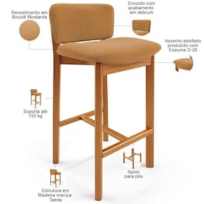Cor: Mostarda | Material: Madeira e Espuma | ProductHeight: 83 cm | ProductInstructions: Produto para uso residencial em ambiente interno, não devendo ficar exposto diretamente ao sol, calo | Com estofado: Sim | MaterialFamily: Madeira e Espuma | OriginState: PR | Model: Banqueta Dara | ProductLength: 47 cm | SizeDescription: Altura: 83cm x Largura: 47cm x Profundidade: 47cm | Peso: 20 kg | Requer montagem: Não | Largura do assento: 45 cm | Diâmetro: na | ProductContents: 02 Banquetas | Estilo: Clássico | ProductWeight: 20 kg | Com rodas: Não | Quantidade de Caixas de embalagem: 1 | Desenho do tecido: Liso | É cadeira de balanço: Não | Altura do assento a partir do solo: 74 cm | Com apoio de braços: Não | Material do estofamento: Bouclê | É empilhável: Não | Cor da estrutura da cadeira: Castanho | Profundidade do assento: 37 cm | Tipo de produto: Banqueta | SupplierSimpleName: Kit 02 Banquetas Alta Para Cozinha Sala de Jantar Bar Dara L02 Bouclê Mostarda - Lyam Decor | Peso máximo suportado: 150 Kg | Com espaço de armazenamento: Não | Cor do assento: Mostarda | Profundidade da cadeira: 47 cm | Espessura do assento: na | OriginCountry: | Color: Mostarda | ProductWarranty: 90 dias após o do produto | ProductWidth: 47 cm | Largura: 47 cm | Cor do estofamento: Mostarda | É dobrável: Não | Fabricante: Lyam Decor | Altura da cadeira: 83 cm | Largura da cadeira: 47 cm