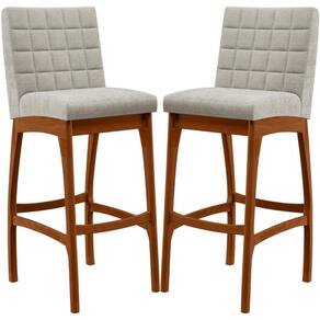 ndo muita excelência, o Kit 02 Banquetas Alta Para Cozinha Sala De Jantar Fixa Mila B04 Bouclê Creme - Lyam Decor é o complemento que faltava para deixar sua casa ainda mais extraordinária. Seu encosto com costura em padrão quadriculado e assento estofados, centralizam em si uma graciosidade estonteante, sem perder todo o conforto, sendo revestidos pelo riquíssimo tecido em bouclê que por si só já é um espetáculo. A estrutura em madeira, na cor nozes, também é digna de notoriedade, por imprimir bastante personalidade a sua decoração. Vale ressaltar ainda, o apoio para os pés que garante maior à mesma.