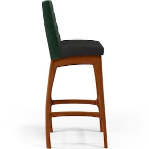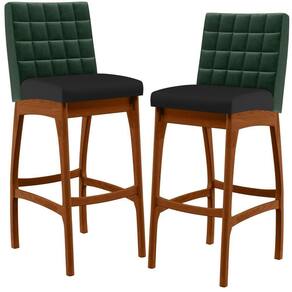 ndo muita excelência, o Kit 02 Banquetas Altas Cozinha Sala Jantar Fixa Mila B04 Facto Verde Musgo Corano Preto - Lyam Decor é o complemento que faltava para deixar sua casa ainda mais extraordinária. Seu encosto com costura em padrão quadriculado e assento estofados, centralizam em si uma graciosidade estonteante, sem perder todo o conforto. A estrutura em madeira, na cor nozes, também é digna de notoriedade, por imprimir bastante personalidade a sua decoração. Vale ressaltar ainda, o apoio para os pés que garante maior segurança à banqueta.