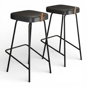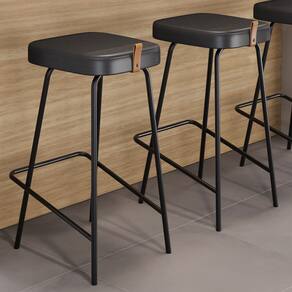Kit 02 Banquetas Altas Cozinha e Área Gourmet Vik Estofada Couríssimo Preto - Desk Design