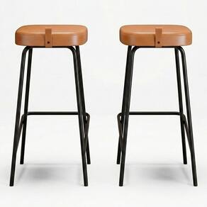 Kit 02 Banquetas Altas Cozinha e Área Gourmet Vik Estofada Couríssimo Whisky - Desk Design - Whisky | Marrom