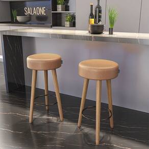 Kit 02 Banquetas Altas Dallas Assento Redondo Com Apoio Para Pés EdeCasaMoveis - Marrom