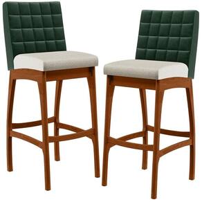 ndo muita excelência, o Kit 02 Banquetas Altas Sala De Jantar Fixa Mila B04 Facto Verde Musgo Linho Champagne - Lyam Decor é o complemento que faltava para deixar sua casa ainda mais extraordinária. Seu encosto com costura em padrão quadriculado e assento estofados, centralizam em si uma graciosidade estonteante, sem perder todo o conforto. A estrutura em madeira, na cor nozes, também é digna de notoriedade, por imprimir bastante personalidade a sua decoração. Vale ressaltar ainda, o apoio para os pés que garante maior à banqueta.