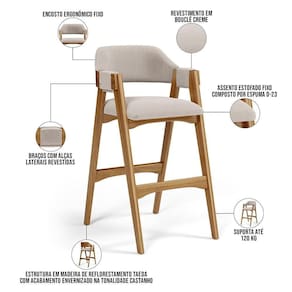 Altura da cadeira: 105 cm | Altura do assento a partir do solo: 76 cm | Color: Creme | ColorFamily: Creme | ColorSimple: Creme | ColorSupplier: Creme | Com apoio de braços: Sim | Com espaço de armazenamento: Não | Com estofado: Sim | Com rodas: Não | Cor: Creme | Cor da estrutura da cadeira: Castanho | Cor do assento: Creme | Cor do estofamento: Creme | Desenho do tecido: Liso | Diâmetro: na | É cadeira de balanço: Não | É dobrável: Não | É empilhável: Não | Estilo: Moderno, Orgânico | Fabricante: Lyam Decor | Largura: 54 cm | Largura da cadeira: 54 cm | Largura do assento: 46 cm | Material: Madeira | Material do estofamento: Bouclê | MaterialFamily: Madeira | Model: Suran | OriginCountry: | OriginState: PR | Peso: 18 kg | Peso máximo suportado: 120 kg | ProductContents: 02 Banquetas | ProductHeight: 105 cm | ProductInstructions: Produto para uso em ambiente interno, nao devendo ficar exposto ao sol, calor e umidade excessivos. | ProductLength: 72 cm | ProductWarranty: 90 dias após o do produto | ProductWeight: 18 kg | ProductWidth: 54 cm | Profundidade da cadeira: 72 cm | Profundidade do assento: 46 cm | Quantidade de Caixas de embalagem: 2 | Requer montagem: Não, o produto é enviado montado | SizeDescription: Altura: 105 cm x Largura: 54 cm x Profundidade: 72 cm | SupplierSimpleName: Kit 02 Banquetas Altas Para Cozinha Sala de Jantar Bar Suran L02 Bouclê Creme - Lyam Decor | Tempo de montagem: na | Tipo de produto: Banqueta Alta