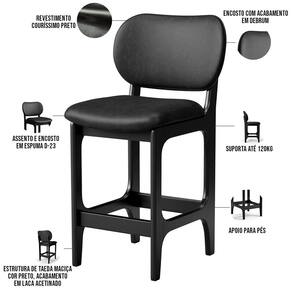 Amplamente sofisticada, o Kit 02 Banquetas Baixa Bar Cozinha Sala Jantar Betta L02 Couríssimo Preto - Lyam Decor irá agregar ainda mais valor em sua decoração!! Sendo capaz de compor muito bem o ambiente, é produzida com materiais de excelente qualidade, a resistente estrutura em madeira de Taeda, na cor Preto, conta com apoio para os pés (que garante maior segurança), além do assento e encosto estofados super confortáveis e convidativos, que são revestidos em tecido Couríssimo, composição extremamente elegante.
