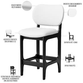 Amplamente sofisticada, o Kit 02 Banquetas Baixa Bar Cozinha Sala Jantar Betta L02 Facto Branco - Lyam Decor irá agregar ainda mais valor em sua decoração!! Sendo capaz de compor muito bem o ambiente, é produzida com materiais de excelente qualidade, a resistente estrutura em madeira de Taeda, na cor Preto, conta com apoio para os pés (que garante maior segurança), além do assento e encosto estofados super confortáveis e convidativos, que são revestidos em tecido Couríssimo, composição extremamente elegante.
