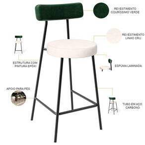Amplamente moderna, dispondo de muito realce e design singular, o Kit 02 Banquetas Baixa Para Cozinha Sala De Jantar Bar Bancada Milão L02 Facto Verde Musgo Linho Cru - Lyam Decor vem com a personalidade e elegância que sua decoração merece! Estruturada em aço carbono, contrasta lindamente com o encosto e assento estofados, cabe mencionar ainda seu revestimento em Couríssimo, é confeccionada por materiais de excelente qualidade, extremamente resistentes e aconchegantes.