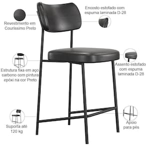 Para você que busca conforto, realce e praticidade, o Kit 02 Banquetas Baixa Estofada Melina vai superar todas as suas expectativas! Garante muita comodidade e otimiza o espaço, além de harmonizar com seu estilo decorativo facilmente, podendo ser utilizada em bancadas, cozinha americana, espaço gourmet ou home bar, trazendo um toque especial em sua decoração. Sua proposta de design suavizará seu ambiente sem passar despercebida oferecendo mais leveza e receptividade ao seu lar. Estruturada em aço carbono, contrasta lindamente com o encosto e assento estofados que são extremamente confortáveis, resistentes e aconchegantes. Você merece esta incrível combinação em sua casa, adquira já a sua!