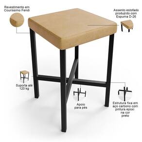Color: Bege | ColorFamily: Bege | ColorSimple: Bege | ColorSupplier: Fendi | Material: Estrutura de aço carbono, Revestimento em Couríssimo e espuma | MaterialFamily: Aço carbono, couro sintético e espuma | Model: Stella | OriginCountry: Nacional | OriginState: PR | ProductContents: 02 Banquetas | ProductHeight: 49 cm | ProductInstructions: Produto para uso em ambiente interno, nao devendo ficar exposto ao sol, calor e umidade excessivos. | ProductLength: 37 cm | ProductWarranty: 90 dias após o recebimento do produto | ProductWeight: 8 kg | ProductWidth: 39 cm | SizeDescription: Altura: 49 cm x Largura: 39 cm x Profundidade: 37 cm | SupplierSimpleName: Kit 02 Banquetas Baixa Bar Cozinha Sala De Jantar Preto Stella L02 Couríssimo Fendi - Lyam Decor