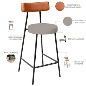 Amplamente moderna, dispondo de muito realce e design singular, o Kit 02 Banquetas Baixa Para Cozinha Sala De Jantar Bar Bancada Milão L02 Couríssimo Camel Linho Bege - Lyam Decor vem com a personalidade e elegância que sua decoração merece! Estruturada em aço carbono, contrasta lindamente com o encosto e assento estofados, cabe mencionar ainda seu revestimento em Couríssimo, é confeccionada por materiais de excelente qualidade, extremamente resistentes e aconchegantes.