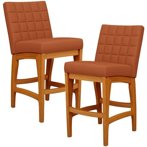 ndo muita excelência, o Kit 02 Banquetas Baixa Para Cozinha Bancada Bar Sala De Jantar Fixa Mila L02 Tecido Terracota - Lyam Decor é o complemento que faltava para deixar sua casa ainda mais extraordinária. Seu encosto com costura em padrão quadriculado e assento estofados, centralizam em si uma graciosidade estonteante, sem perder todo o seu conforto. A estrutura em madeira, na cor nozes, também é digna de notoriedade, por imprimir bastante personalidade a sua decoração. Vale ressaltar ainda, o apoio para os pés que garante maior à mesma. Pode ser acomodada em cozinha americana, ambientes integrados, espaços gourmets, bancadas ou em seu home bar, independente do lugar, ela desperta logo de cara bastante elegância e deixa tudo mais despojado, perfeita para criar um ambiente harmonioso e agradável para receber a família e amigos, quando favorável.