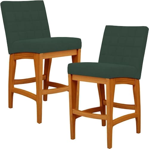 ndo muita excelência, o Kit 02 Banquetas Baixa Para Cozinha Bancada Bar Sala De Jantar 90 cm Fixa Mila L02 Suede Verde Musgo - Lyam Decor é o complemento que faltava para deixar sua casa ainda mais extraordinária. Seu encosto com costura em padrão quadriculado e assento estofados, centralizam em si uma graciosidade estonteante, sem perder todo o seu conforto. A estrutura em madeira, na cor nozes, também é digna de notoriedade, por imprimir bastante personalidade a sua decoração. Vale ressaltar ainda, o apoio para os pés que garante maior à mesma.