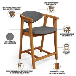 Esse kit de banquetas combina design moderno e funcionalidade, já que é ideal para cozinha, sala de jantar, bancada ou área gourmet. Além disso, são feitas com madeira de eucalipto vermelho tratado, o que garante durabilidade e sustentabilidade. Já o assento e encosto estofados com espuma de alta densidade proporcionam máximo conforto durante suas refeições ou momentos de descontração.